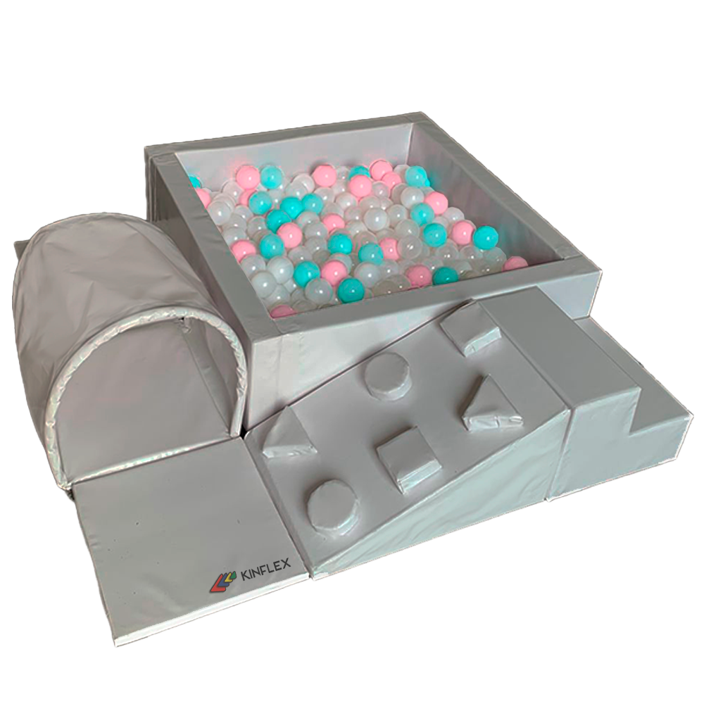 - 1 Alberca de pelotas fija cuadrada de 95 x 95 x 30 cm con piso de colchoneta